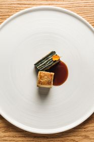 Potato, Mushrooms, Pork Skin, Perigueux Sauce