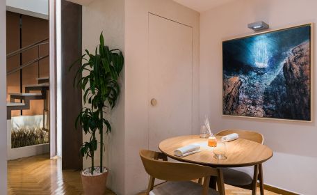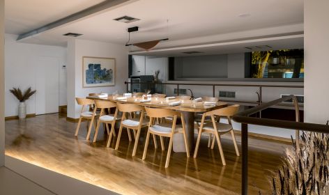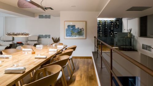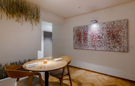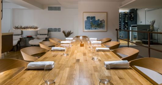 Το μοναστηριακό μας τραπέζι μπορεί να φιλοξενήσει μέχρι 10 άτομα ενώ πλαισιώνεται από την ειδικά σχεδιασμένη κάβα κρασιού, ένα καθιστικό καθώς και ένα εστιατορικό μπαρ που ολοκληρώνει αυτήν τη μοναδική εμπειρία για τον επισκέπτη. Σε συνεννόηση με τον σεφ μας, μπορείτε να δημιουργήσετε το δικό σας μοναδικό εξατομικευμένο μενού γευσιγνωσίας.