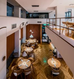 Ο επάνω χώρος λειτουργεί ως ο ιδιωτικός χώρος του εστιατορίου όπου οι πελάτες μας μπορούν να οργανώσουν ένα οικογενειακό, εταιρικό ή εορταστικό δείπνο.